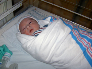 That there is Alexander Charles Dowsett. Basically Dowsett: The Next Generation. He was born on Sunday February 4th, at 3:43am. He likes eating and sleeping, and practises the fine art of crying during diaper changes. Mom and baby are both healthy and got a doctor’s stamp of approval today.